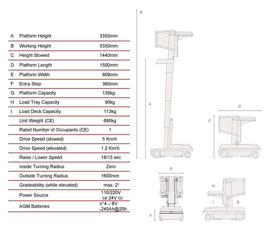 * Working height up to 5.35m