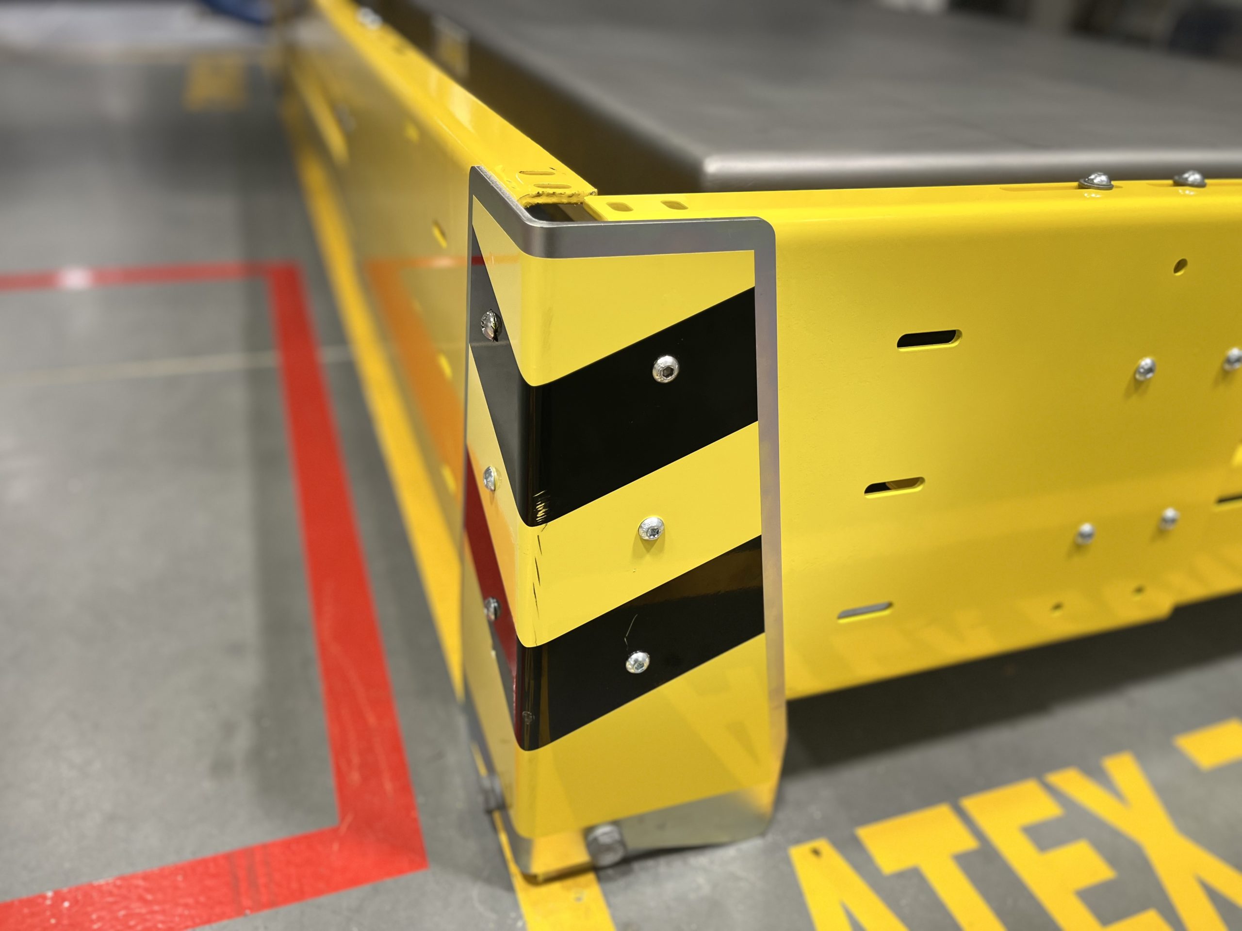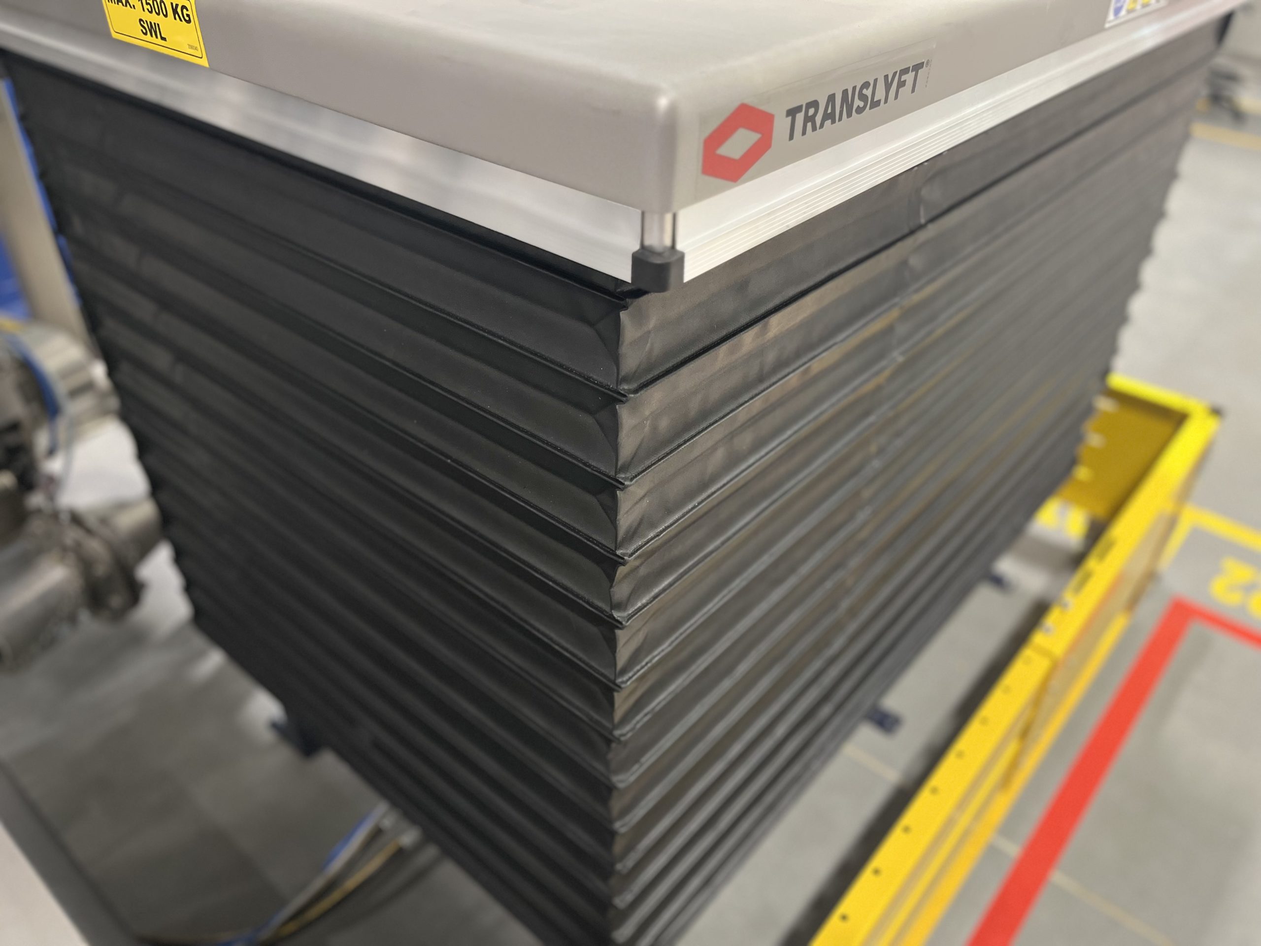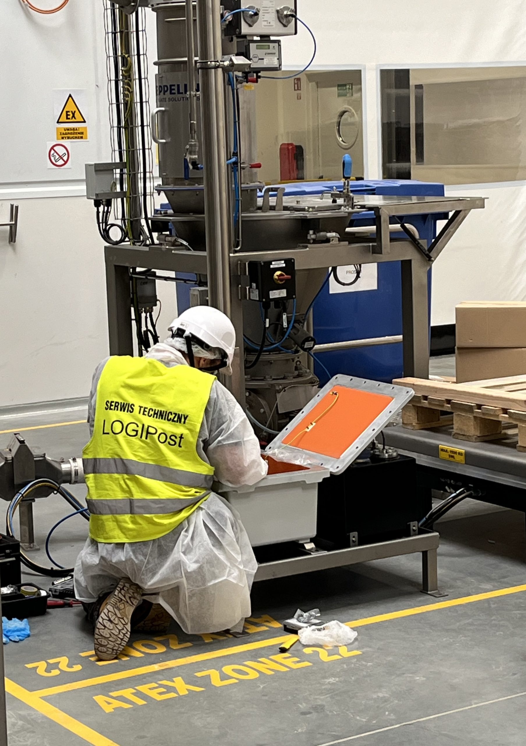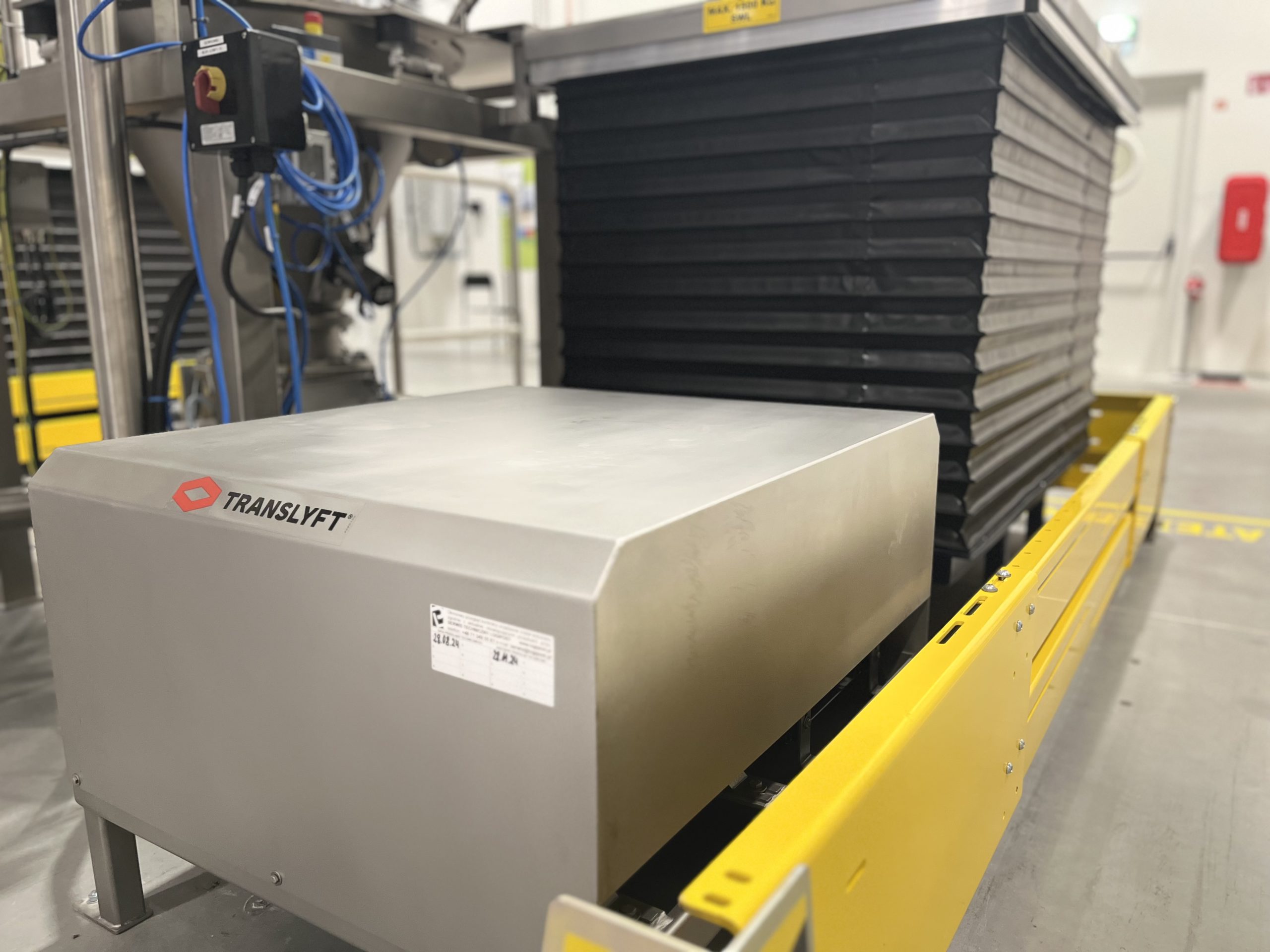 Urządzenia Transportu Bliskiego przeznaczone do pracy w strefach zagrożonych wybuchem to zawsze wymagające aplikacje. Ten przypadek nie jest wyjątkiem. Wszystkie komponenty urządzenia są dostosowane do pracy w określonej atmosferze wybuchowej. Dostarczone urządzenia stanowiły podstawowe wyposażenie ergonomicznego stanowiska pracy do załadunku półproduktów, więc już na samym początku procesu produkcyjnego. Wymagany udźwig 1500 kg zadecydował o wyborze modelu stołu podnośnego TL2000 – niezwykle stabilnego, dopracowanego i flagowego modelu z rodziny pojedynczych nożyc TRANSLYFT. Ponieważ do pozycjonowania palet z półproduktami na podnośniku stosuje się elektryczne wózki widłowe z nogami przednimi (aby umieścić paletę na platformie podnośnika, nogi wózka widłowego muszą wjechać pod podnośnik), do aplikacji dodano specjalną ramę nośną FLT wyposażoną w sześć stóp kotwionych do posadzki, Rama FLT umożliwia wjazd wózka widłowego pod rękaw podnośnika. Platforma podnośnika hydraulicznego wykonana jest ze stali nierdzewnej AISI 304/1.4301 szkiełkowanej o wymiarach: 1450x1000 mm; skok nożyc: 820 mm; wysokość spoczynku: 410 mm (podnośnik 210 mm + rama nośna FLT 200 mm); maksymalna wysokość podnoszenia: 1230 mm; czas podnoszenia: 25 sekund; zastosowano siłownik hydrauliczny typu II, tj. tłoczysko i wszystkie przyłącza hydrauliczne wykonane są ze stali nierdzewnej AISI 316/1.4401; rura siłownika jest piaskowana, pokryta podkładem antykorozyjnym i pomalowana dwuskładnikowym lakierem poliuretanowym. Dodatkowo zainstalowano osłonę mieszkową nożyc PCV, specjalnie dostosowaną do pracy w strefach EX. Na uwagę zasługuje również wolnostojący zespół elektrohydrauliczny podnośnika. Kompletna jednostka zasilająca jest oddzielona od stołu podnoszącego. Wszystkie podzespoły elektryczne umieszczono w szczelnie zamkniętej żeliwnej obudowie. Wszystkie porty kablowe są dodatkowo uszczelnione specjalną pastą. Całość chroni solidna obudowa, również wykonana ze stali nierdzewnej szkiełkowanej. Aby zabezpieczyć urządzenie (zarówno windę, jak i jednostkę), zastosowano wielorazowy panel odbojowy (z wbudowanym systemem SIS łączącym podstawę z osłoną), składający się z narożnych odbojników FAS oraz panelu antykolizyjnego RSP. Kompletny panel odbojny RSP plus zapewnia bardzo solidną ochronę antykolizyjną z wytrzymałością na uderzenia przekraczającą 400 Nm. To ergonomiczne stanowisko pracy nie tylko świetnie wygląda, ale jest również absolutnie najlepszym technicznie rozwiązaniem dostępnym obecnie na rynku. Mocno polecane dla wszystkich ergonomicznych aplikacji w strefach wybuchowych ATEX.